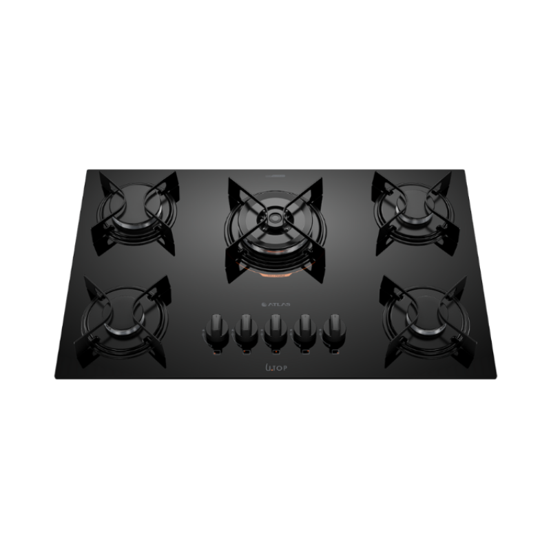 El anafe cooktop Atlas combina potencia y diseño moderno con 5 quemadores de alto rendimiento sobre una elegante superficie de vidrio templado, ideal para una cocina eficiente y sofisticada.