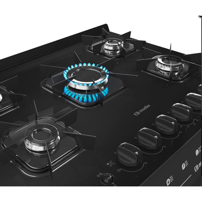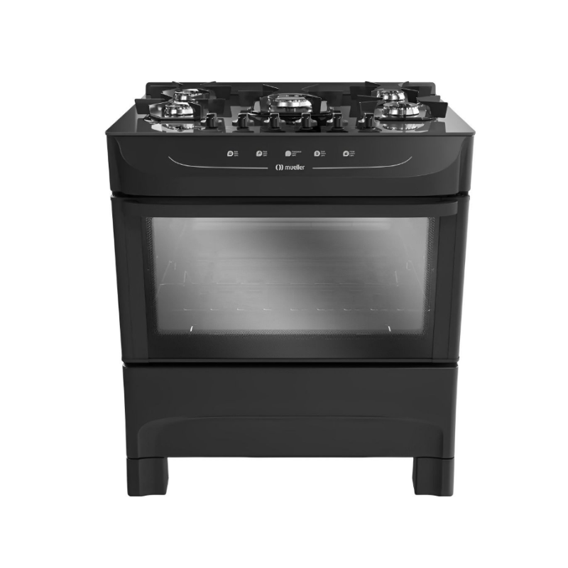 La Cocina a Gas Mueller Fratello Vetro MFV5BB 5 Hornallas combina estilo y eficiencia. Su diseño con mesa de vidrio templado y barandillas de acero esmaltado le otorgan un toque contemporáneo a cualquier cocina. Dispone de 5 quemadores, incluyendo un quemador ultra de 3700 W, quemadores familiares de 2000 W y medianos de 1700 W, ofreciendo una cocción más rápida y eficiente. El encendido es totalmente automático, tanto en la mesa como en el horno, y cuenta con un interior esmaltado en Total Clean, lo que facilita su limpieza. Con una capacidad de 82 litros, este horno es ideal para grandes recetas.