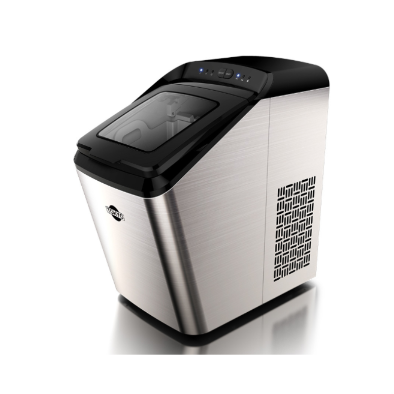 Con capacidad de hasta 15 kg diarios, garantiza un suministro constante de hielo tipo bala, ideal para bebidas, eventos y uso diario. Su diseño en acero inoxidable combina durabilidad con un estilo moderno, mientras que su sistema de carga manual facilita su uso sin necesidad de instalación.