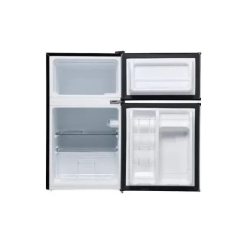 Ofrece una solución compacta y elegante para el almacenamiento de alimentos. Su diseño moderno y acabado en negro y plateado se adapta a cualquier estilo de cocina. Equipada con un compartimento de congelador y estantes ajustables, proporciona flexibilidad en el almacenamiento. Su eficiencia energética asegura un bajo consumo, mientras que su tamaño compacto es ideal para espacios reducidos o como segunda unidad en oficinas o habitaciones.