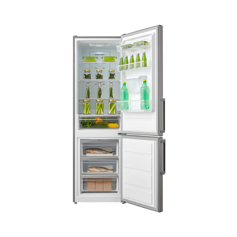 Su sistema de frío seco garantiza una distribución uniforme de la temperatura, manteniendo los alimentos frescos por más tiempo. Incluye un práctico dispensador de agua en el exterior, facilitando el acceso a agua fría sin abrir la puerta. Con amplios compartimentos y estantes ajustables, proporciona una organización eficiente del espacio de almacenamiento. Ideal para hogares que buscan funcionalidad y estilo.
