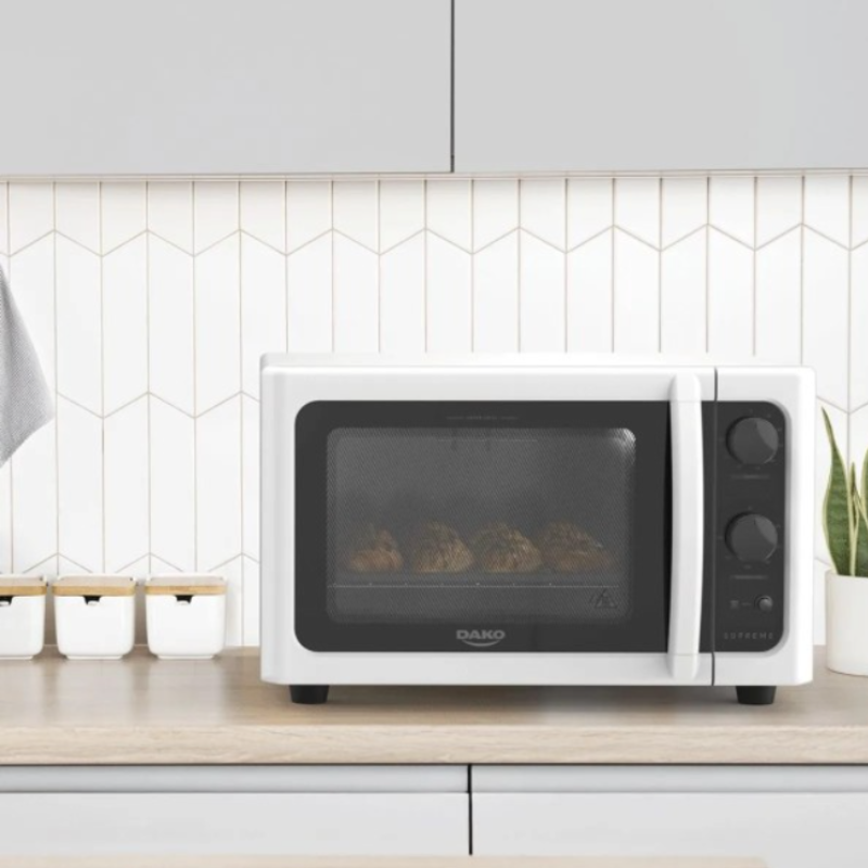 El horno eléctrico Dako Supreme transforma su cocina con tecnología, práctica y diseño compacto y versátil. Con 44 litros de espacio interno.