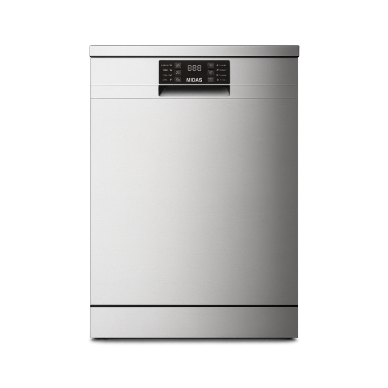 El Midas MD-LVS13C es un lavavajillas de libre instalación en acabado acero inoxidable pensado para familias que buscan practicidad diaria sin complicarse. Con 13 cubiertos de capacidad, permite lavar vajilla de comidas familiares en un solo ciclo. Dispone de varios programas de lavado, entre ellos rápidos y ecológicos, para que elijas entre velocidad o eficiencia según la carga. La marca destaca su tecnología de ahorro de agua y energía, manteniendo un rendimiento de lavado sólido y uniforme.