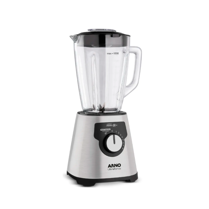 La licuadora Arno Ultraforce LN92 Inox de 1400 W combina potencia y elegancia con su vaso de vidrio resistente a choques térmicos, ideal para preparaciones frías y calientes.