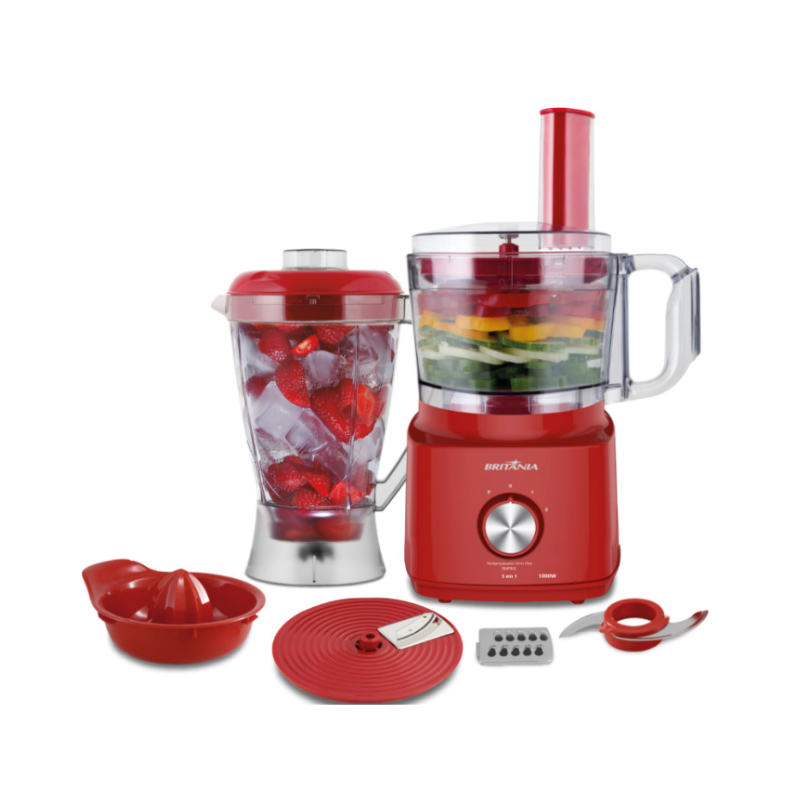 El Multiprocesador Britania BMP950 RO 220V es un equipo multifuncional diseñado para brindar practicidad, potencia y versatilidad en la cocina. Ideal para quienes buscan preparar múltiples recetas con un solo electrodoméstico, combina diversas funciones en un diseño moderno y eficiente.