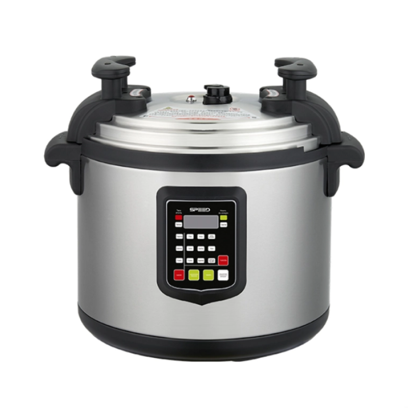 La olla a presión eléctrica SPEED de 15 litros está diseñada para quienes necesitan preparar grandes cantidades de alimentos de manera rápida y eficiente. Ideal para familias numerosas, eventos o preparaciones comerciales, combina potencia, seguridad y practicidad. Su sistema de cocción a presión reduce significativamente los tiempos de preparación, conservando nutrientes y sabor de los alimentos, mientras que su diseño robusto asegura durabilidad y facilidad de uso.