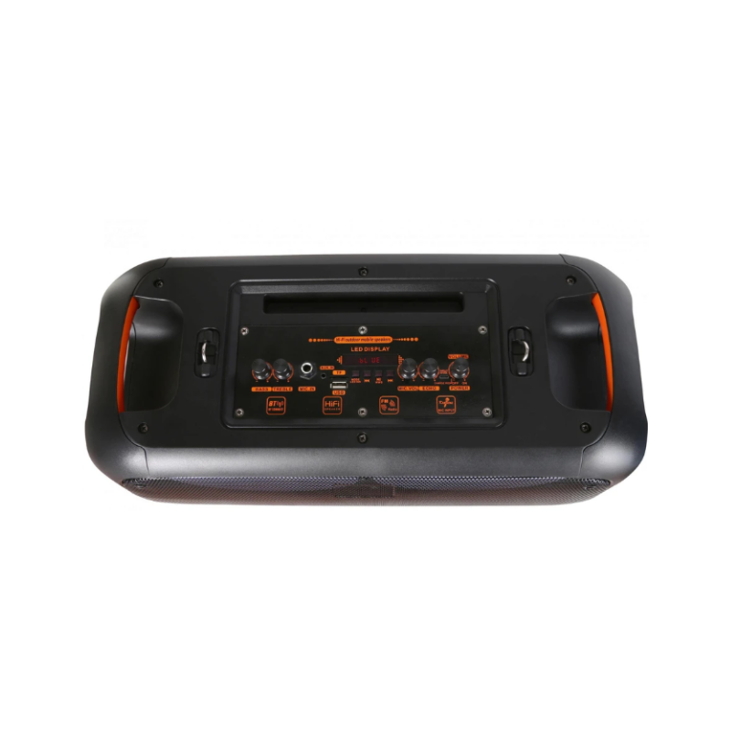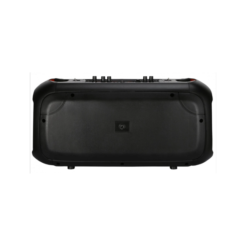 Incluye iluminación LED RGB que se sincroniza con la música, creando un ambiente dinámico y moderno. Su diseño portátil con manijas y correa permite transportarlo fácilmente a cualquier lugar.
