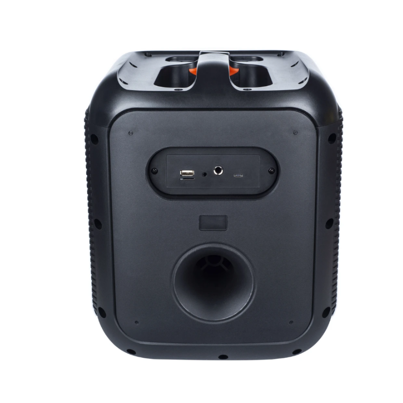 Equipado con woofer de 8”, ofrece un rendimiento sólido con graves marcados, mientras que sus luces LED sincronizadas con la música crean un ambiente dinámico y moderno.