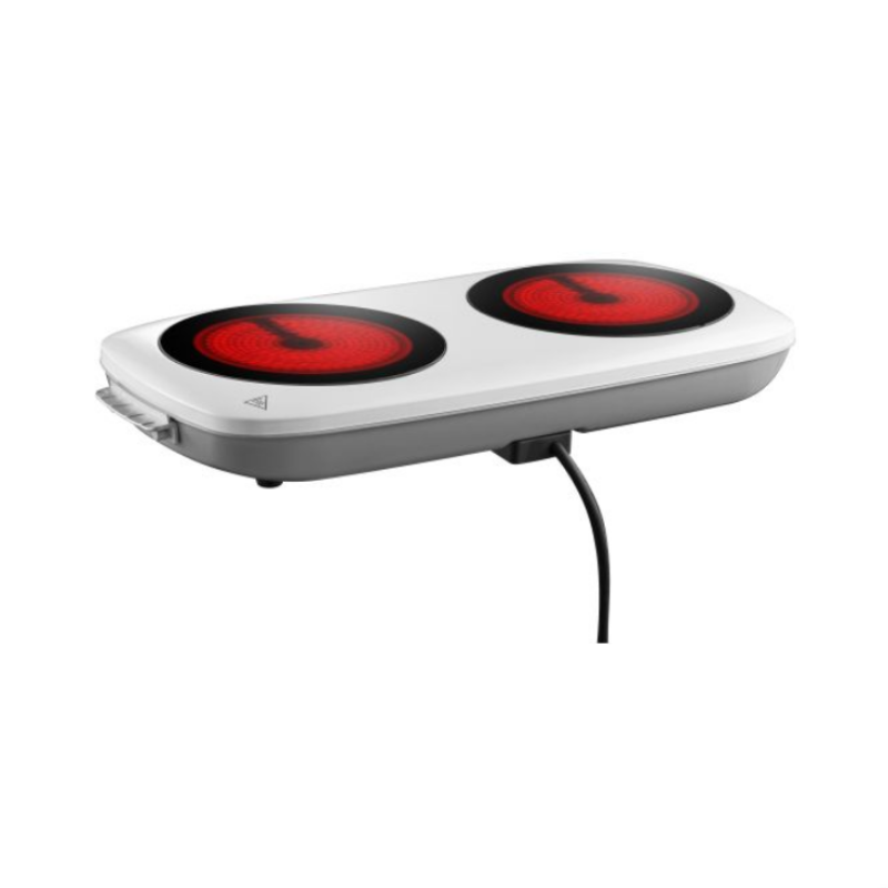 La placa infrarroja MIDAS de doble hornalla con vitrocerámica ofrece eficiencia, seguridad y practicidad en la cocina. Cada hornalla cuenta con 1300W de potencia, proporcionando calor rápido y uniforme para todo tipo de recipientes. Su superficie de vidrio vitrocerámico facilita la limpieza y su diseño compacto permite utilizarla en espacios reducidos como departamentos, oficinas o cocinas pequeñas. Ideal para hervir, guisar, freír y preparar sopas con total comodidad y control.